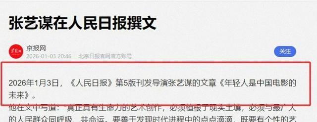 2026年1月3日,人民日报第5版刊出一篇署名文章,标题简单到不能再简单,叫“年轻人是中国电影的未来”