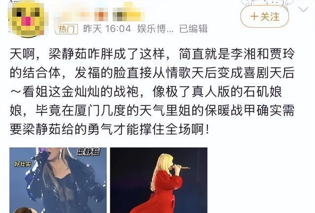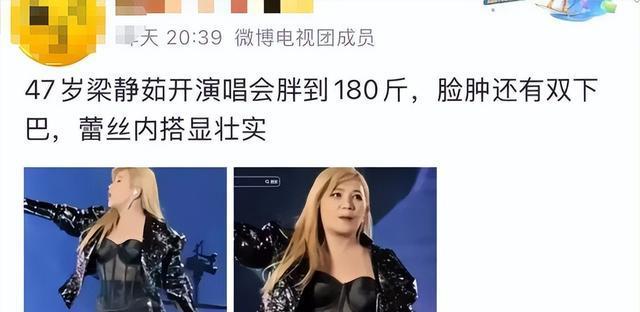 部分网友觉得,47岁的梁静茹体型明显发福,脸部出现双下巴,身形圆润,演出服造型也被认为凸显赘肉。